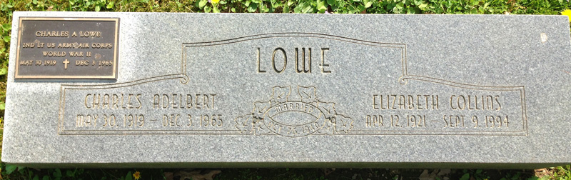 Lowe. Charles Adelbert & Elizabeth Collins, Marker, Companion